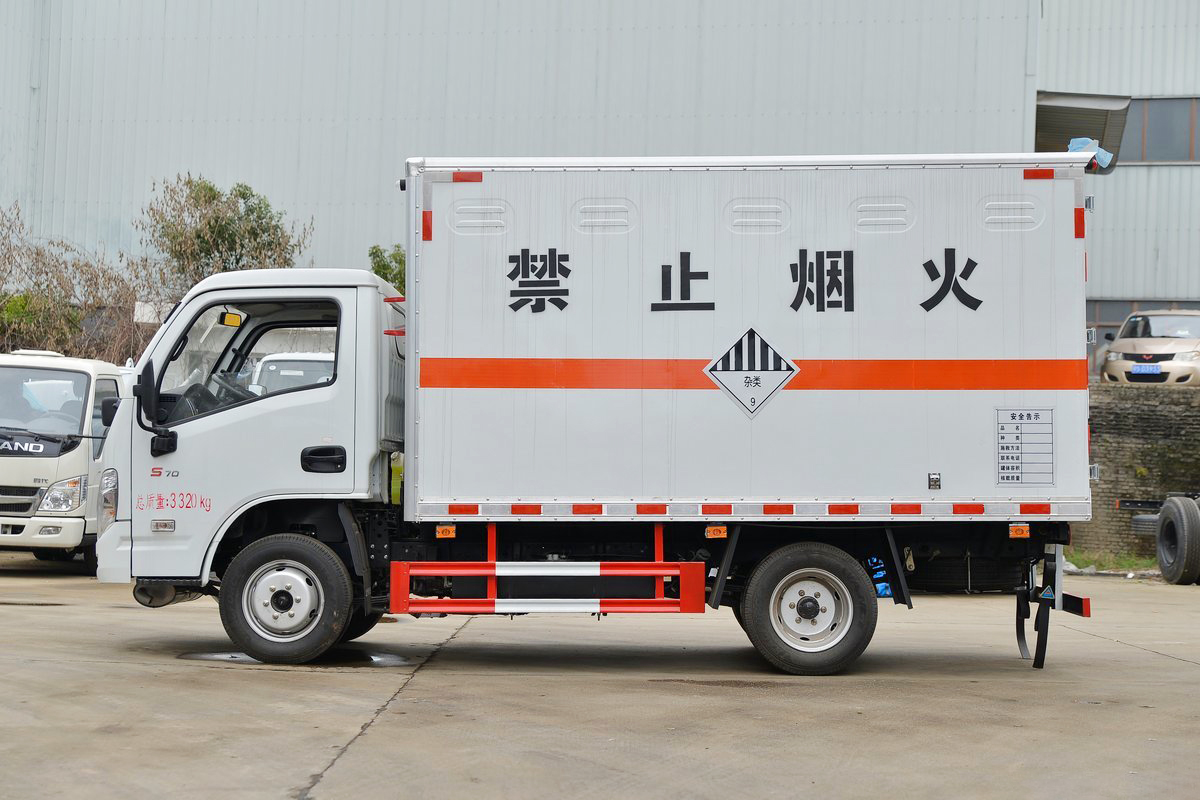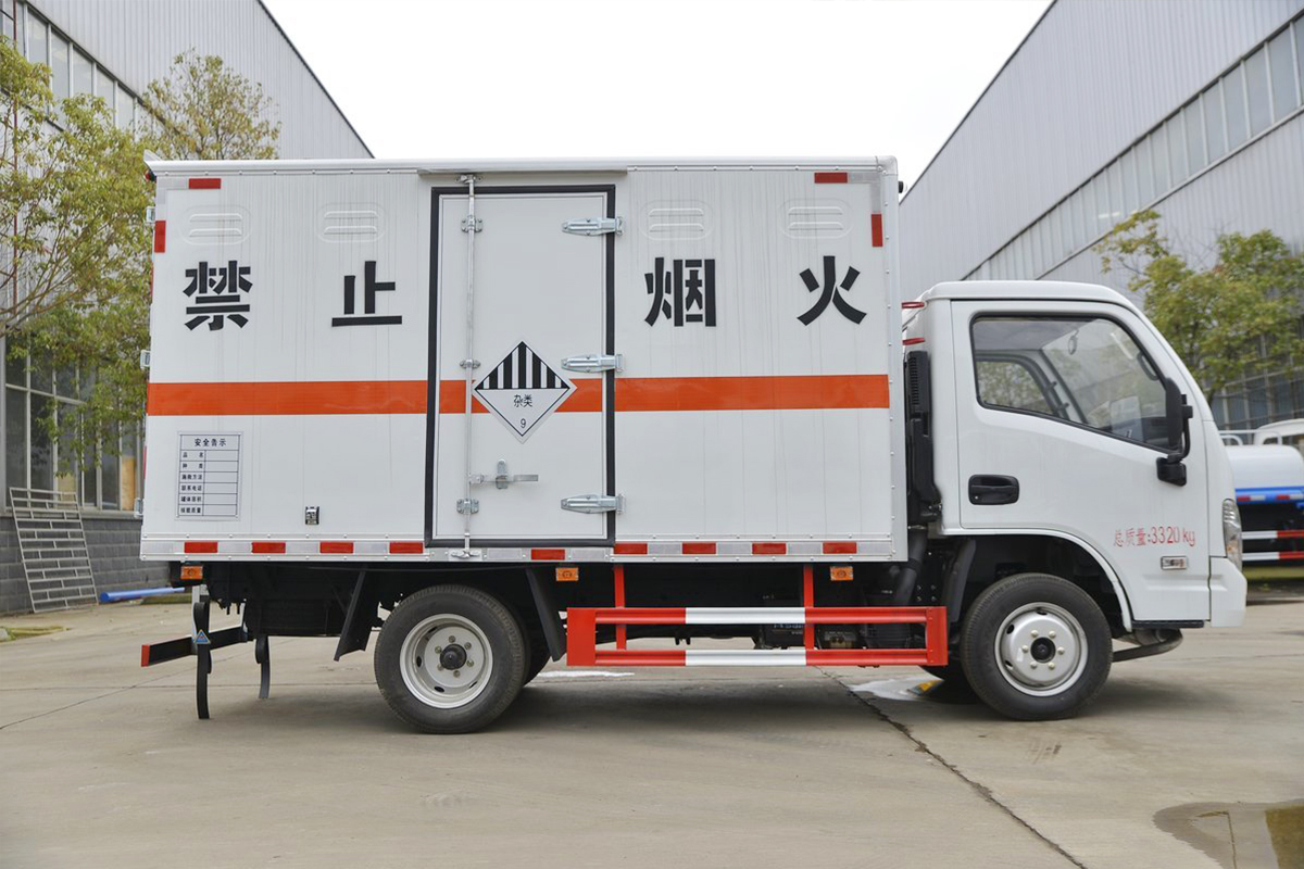 | 整车说明: | 该车适用于运输危险品为危险品运输车。厢体顶部封闭,不可开启,选装侧门型式及位置。选装右侧箱体不开门,选装不开侧门时整车宽度为1775mm,仅采用底盘子午线轮胎和带ABS的底盘,该车前轮安装盘式制动器,前置排气管,装配限速装置,限速80km/h。安装带有卫星定位功能的行驶记录仪。安全装置为导静电带,用于防止静电。整车长/轴距/后悬对应关系为(mm):5150/2850/1210,5150/2650/1410,4950/2850/1010,4950/2650/1210。该车主要用于运输具有独立(瓶)包装的介质,类项号:9。仅采用发动机LJ4A15Q6,对应油耗申报值为10.6L/100km。ABS控制器型号/生产厂家:YF8/武汉元丰汽车电控系统有限公司。随底盘选装驾驶室及轮辋。驾驶室安装双预警装置。 | ||