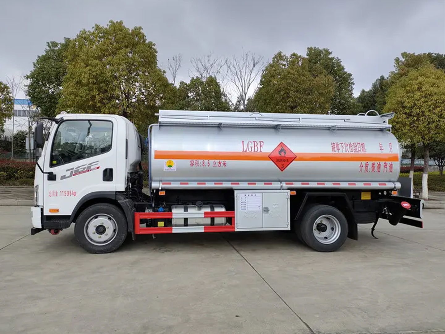 | 整车说明: | ABS型号:CM4XL-4S/4M,VIE ABS-II;ABS生产企业:广州瑞立科密汽车电子股份有限公司,浙江万安科技股份有限公司;安装有限速装置;限速装置限速(km/h):80;安装有具有卫星定位功能的行驶记录仪;选装描述:选装导流罩.选装新结构导流罩.选装排半驾驶室.选装改侧窗的驾驶室.选装新前脸驾驶室,仅选用3900mm轴距底盘;发动机/油耗值(L/100km)对应关系为:WP3NQ160E61/21.3,CA4DD1-16E6/21.18,D30TCIF1/21.03;所用材料材质、连接方式以及后部防护装置的主要尺寸参数(断面尺寸和离地高度):侧/后防护材料为Q235,侧防护焊接,后防护螺栓连接,截面尺寸(mm):120×50,离地高450mm;罐体有效容积(立方米)、罐体外形尺寸(mm):罐体有效容积8.5立方米,罐体外形尺寸(长×长轴×短轴)(mm):4800×1850×1200,4800×1950×1350;专用功能及装置:该车适用于危险品运输;FL型车辆;准运介质大密度830千克/立方米;其他说明:该车型可选装ETC车载装置,该车仅选用排气管前置,前盘制动,子午线轮胎,转向轮安装轮胎爆胎应急防护装置;选装后部结构样式。选装罐体上部无走道。 | ||