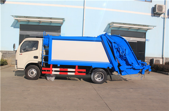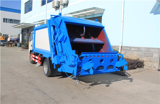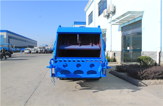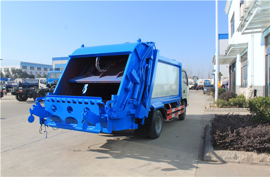 东风锐铃压缩式垃圾车上装配置:有效压缩容积5方,可装4-5吨生活垃圾,压缩倍率3-4倍,压缩后生活垃圾密度从0.36变为0.95以上,带污水收集箱,新款平板式箱体更美观,尾部 带密封橡胶垫,可防污水滴漏二次污染。尾部可带翻转斗或挂桶装置,可选装PLC一键操控系统,驾驶室和尾部双操控机构。
