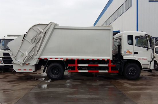 东风D9压缩式垃圾车上装配置:有效压缩容积10方,可装8-9吨生活垃圾,压缩倍率3-4倍,压缩后生活垃圾密度从0.36变为0.95以上,带污水收集箱,新款平板式箱体更美观,尾部 带密封橡胶垫,可防污水滴漏二次污染。尾部可带三角斗、大落地斗,挂桶装置,PLC一键操控系统,驾驶室和尾部双操控机构。
