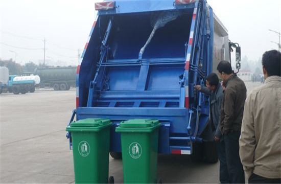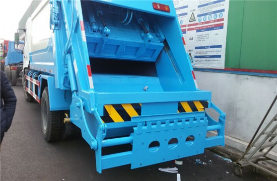 后装压缩挂桶垃圾箱: 垃圾箱体边采用3mm碳钢板,底板采用4mm碳钢板,箱体容积4.0-5.0(标准容积)方米,箱体打骨架加强,后推板式垃圾箱(选择安装挂桶翻转机构或垃圾斗翻转机构);