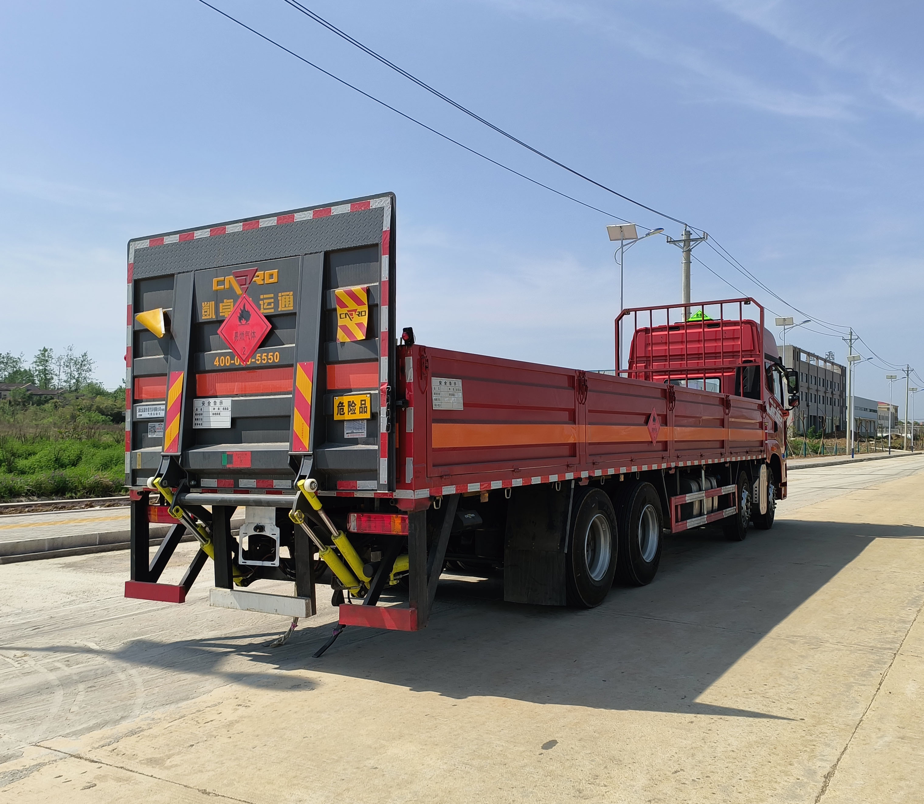 上装配置:底板采用3MM花纹板,边板1.5MM,随车配备,手提灭火器,静电胶皮,危险品三角顶灯,防护帽等,底梁间距30公分,严格按照危险品法规进行标识粘贴等。
