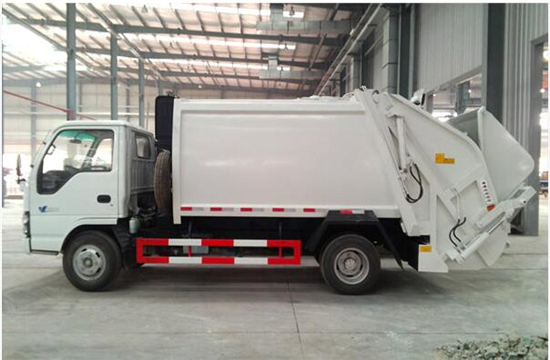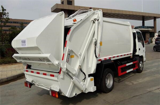 庆铃4吨压缩式垃圾车上装配置:压缩垃圾箱体,改进型外观设计,液压动力,电控操作,方便可靠,容积5-6方,带污水收集箱,保修三万公里。