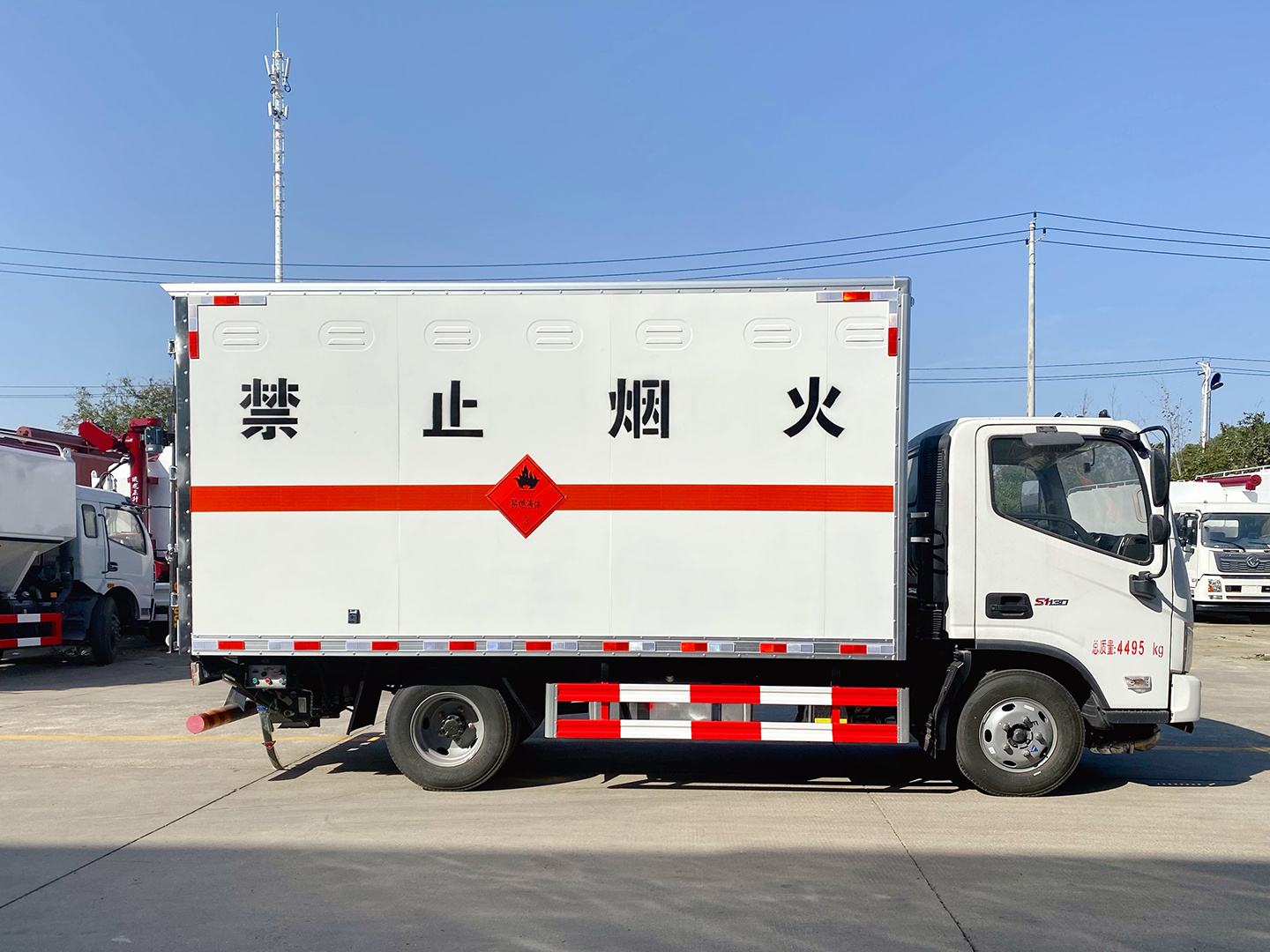 | 整车说明: | 1、该车适用于运输危险品。车厢顶部封闭、不可开启。该车主要用于运输独立容器包装的介质,类项号:3。 2、选装侧开门,侧门可为单开门或双开门或不开门,选装侧门型式及位置,选装不带液压尾板,不带液压尾板时后防护焊接连接,截面尺寸为100×50mm,离地高度为460mm。随底盘选装不同驾驶室,前保险杠,前组合灯具及前雾灯。选装导流罩,选装排半驾驶室,选装瓦楞结构厢体,装液压尾板时收起状态的水平长度为280mm,尾板质量为350kg.3、侧/后防护材料为Q235,侧防护螺栓连接,后防护为柱形,焊接连接,直径为120mm,下边缘离地高450mm。4、仅采用装配前轮盘式制动器,前置排气管,子午线轮胎, 转向轮安装轮胎爆胎应急防护,限速装置的底盘;限速80km/h;该车安装具有卫星定位功能的行驶记录仪,可选装ETC车载装置;ABS系统控制器型号/生产企业:ABS-E/威伯科汽车控制系统()有限公司,ABS-VIE/广州瑞立科密汽车电子股份有限公司。发动机/油耗值(L/100km):F2.8NS6B131/11.5,Q28-130E60/11.5. | ||