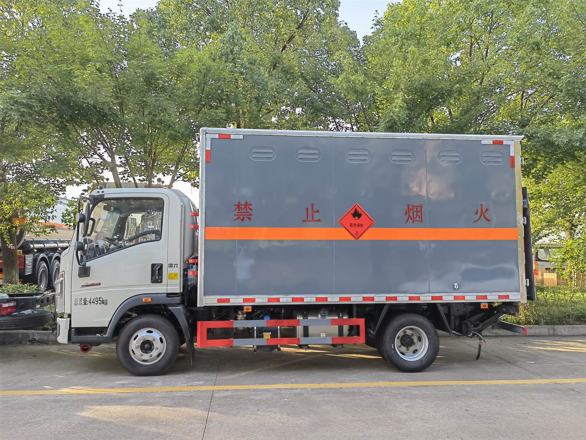 重汽豪沃蓝牌易燃液体厢式运输车