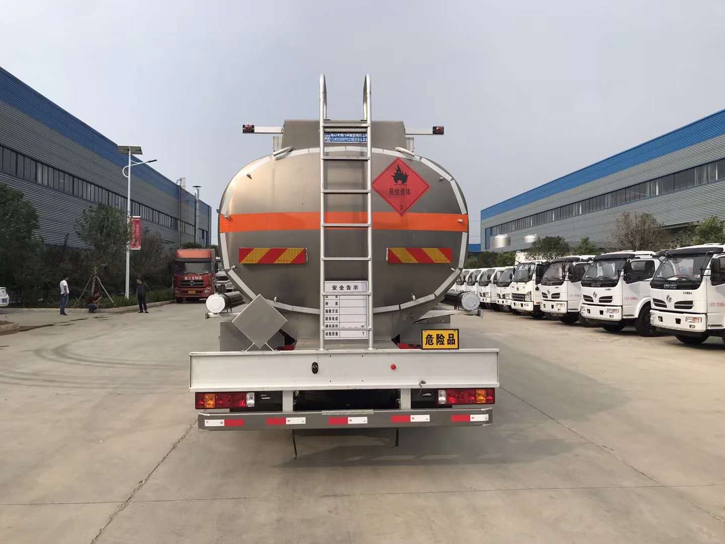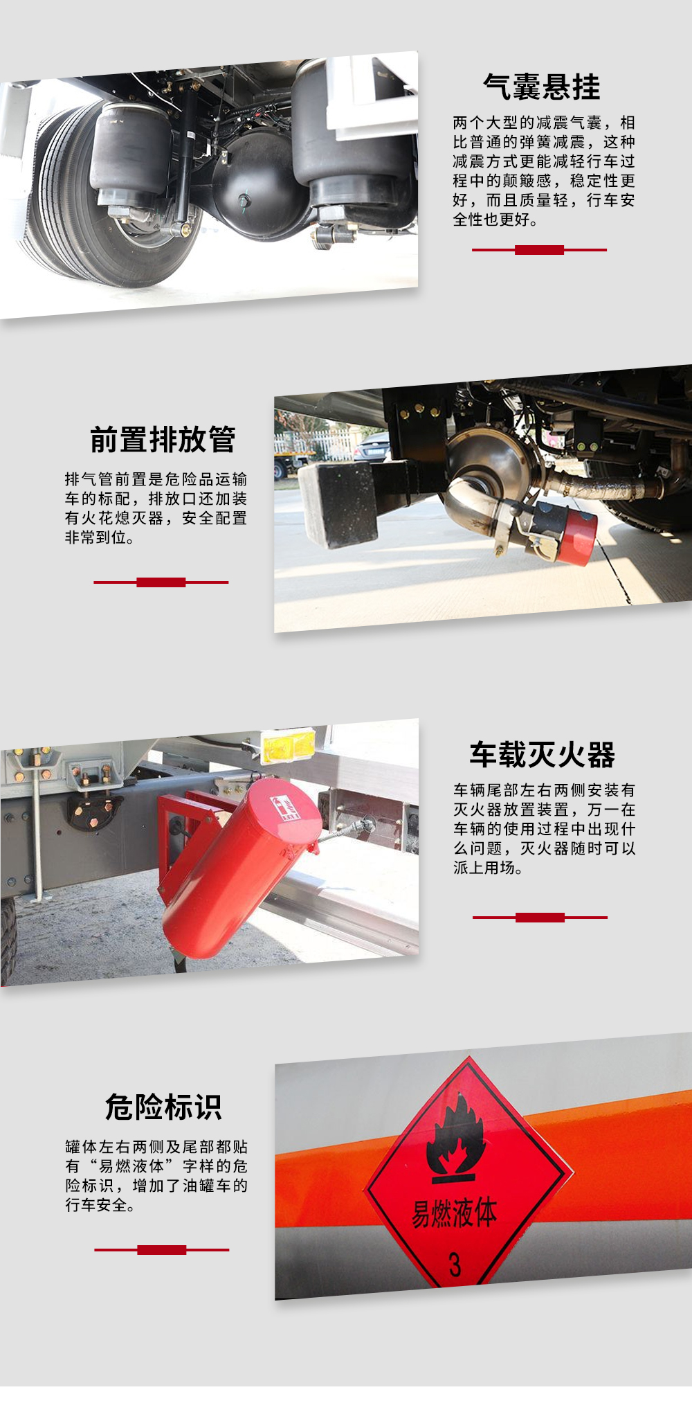 | 整车说明: | 1.罐体有效容积:26立方米,介质:柴油,煤油,汽油;密度分别为830,800,730千克/立方米;类项号:3,危险货物运输车辆的类型为FL型;罐体外形尺寸(长×长轴×短轴)(mm):8950×2350×1600;2.仅选用底盘1800+4575+1400(mm)轴距,随底盘选装驾驶室;安装具有卫星定位功能的行驶记录仪;排气管前置,安装前轮盘式制动器和限速装置,限速80km/h,仅采用底盘子午线轮胎,后轴安装空气悬架,转向轮安装轮胎爆胎应急防护装置;ABS系统控制器生产企业/型号为威伯科(上海)管理有限公司/4460046300;选装EBS,EBS系统控制器生产企业/型号为威伯科(上海)管理有限公司/EBS3;3.侧防护装置,材料:铝合金,连接方式:螺栓连接;后下部防护装置,材料:铝合金,连接方式:螺栓连接加焊接,断面尺寸(mm):120×50,离地高度:490mm;4.发动机/油耗值对应关系(L/100km) MC07.31-60/36.9;MC07.34-60/36.9. | ||