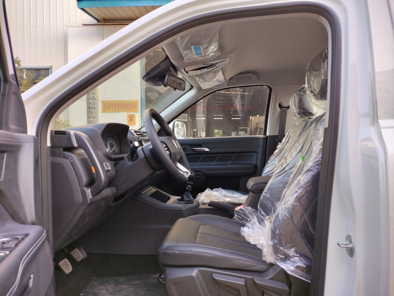 江铃大道全新皮卡单排车型,准乘2人,3270mm轴距,采用福特Puma柴油JX4D23A6L发动机,2.3L排量,130Kw、177马力,格特拉克手动6挡变速箱,分时四驱,空调,遥控钥匙中控锁,电动车窗,多功能方向盘,定速巡航,一键启动,10寸多功能触摸显示屏,LED日间行车灯,前后驻车雷达,四轮碟刹,195/75R16轮胎,铝合金轮毂,胎压监测,排气管前置,限速80km/h,电源总开关,车道偏离预警,防碰撞预警。