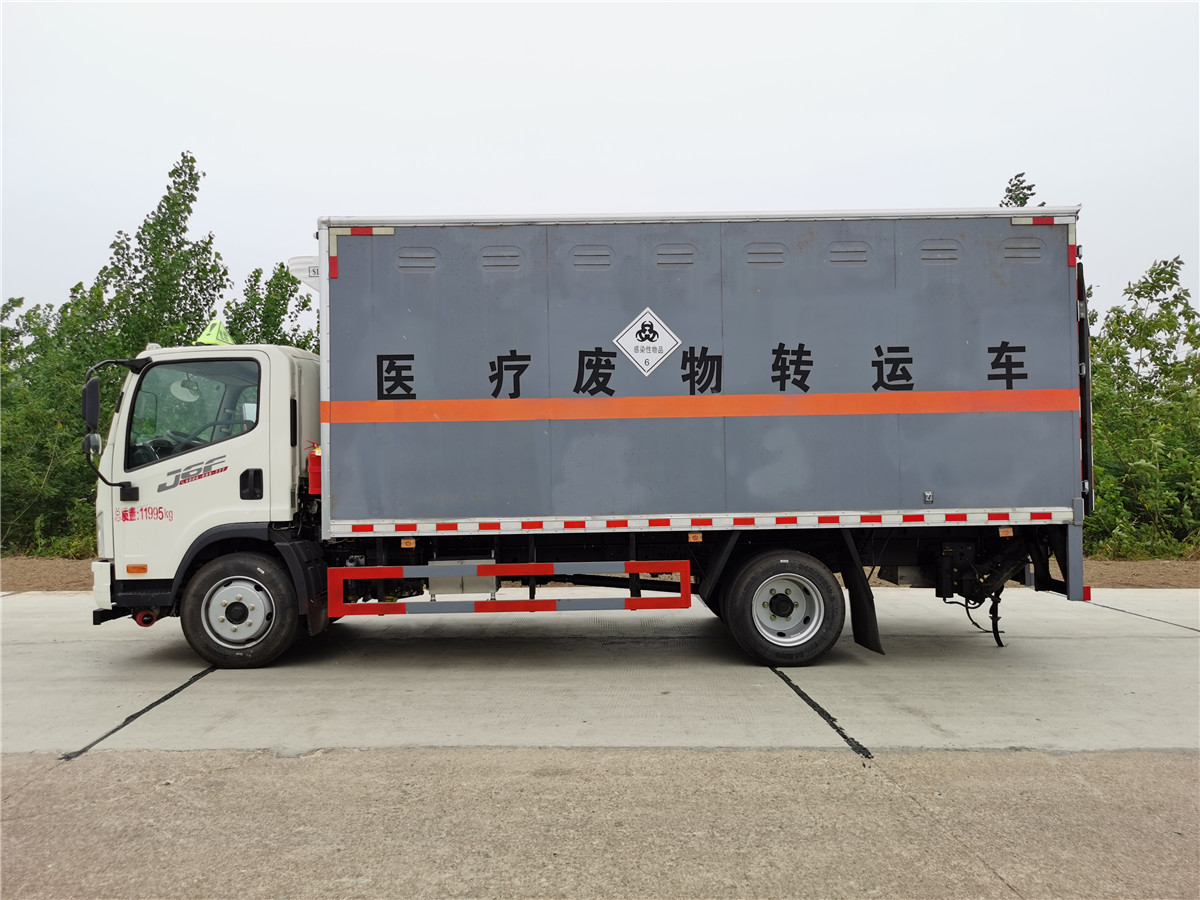采用解放平头汽车,潍柴160马力,国六排放标准,245真空胎,带ABS,空调+电动门窗+中控锁,行车记录仪,带静电拖地带,爆胎应急安全装置,轴距:3900。带车道偏离预警,前防撞预警。 (可选装大柴160马力底盘)