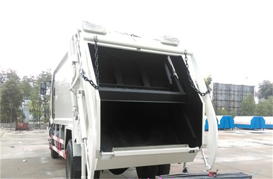 垃圾箱体边采用3mm碳钢板,底板采用4mm碳钢板,箱体容积6.0-8.0(标准容积)立方米,箱体打骨架加强,后推板式垃圾箱(选择安装挂桶翻转机构或垃圾斗翻转机构)